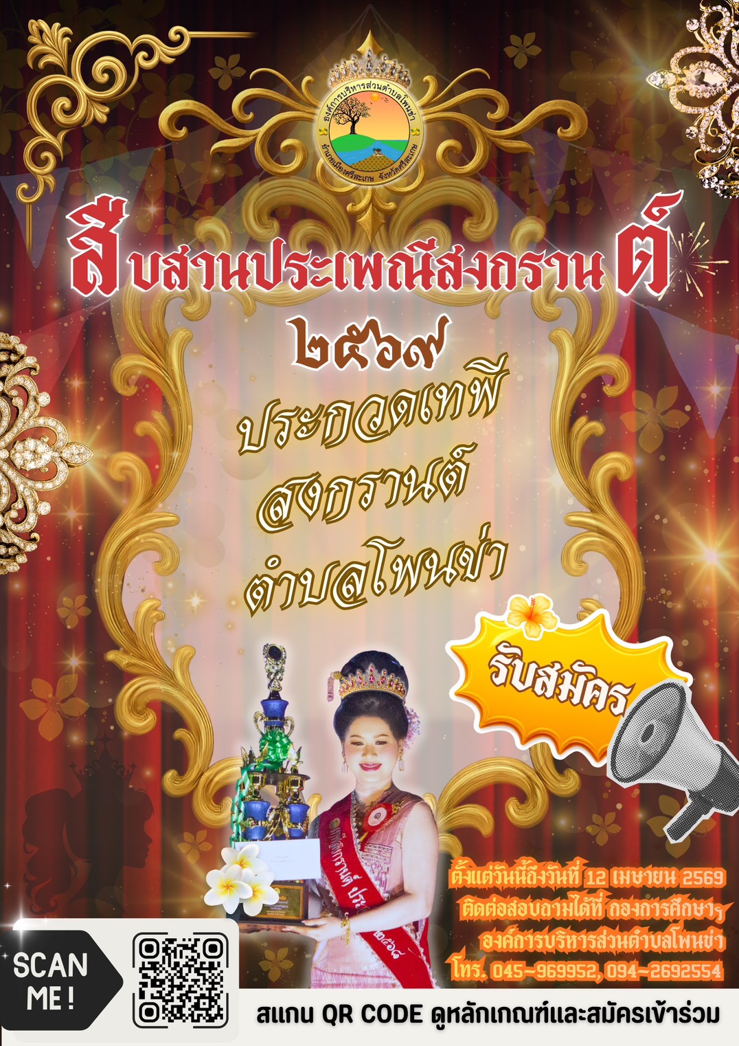 ประกาศหลักเกณฑ์การประกวดเทพีสงกรานต์พร้อมใบสมัครการประกวดเทพีสงกรานต์ประจำปี พ.ศ. 2569 |