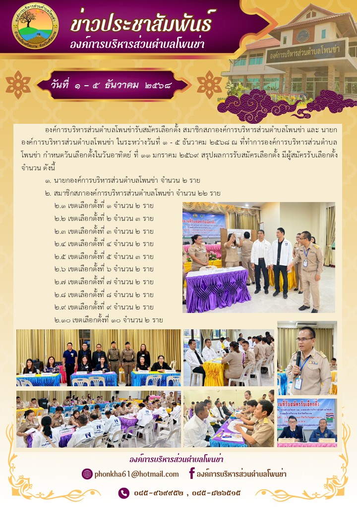 องค์การบริหารส่วนตำบลโพนข่ารับสมัครเลือกตั้ง สมาชิกสภาองค์การบริหารส่วนตำบลโพนข่า และ นายกองค์การบริหารส่วนตำบล